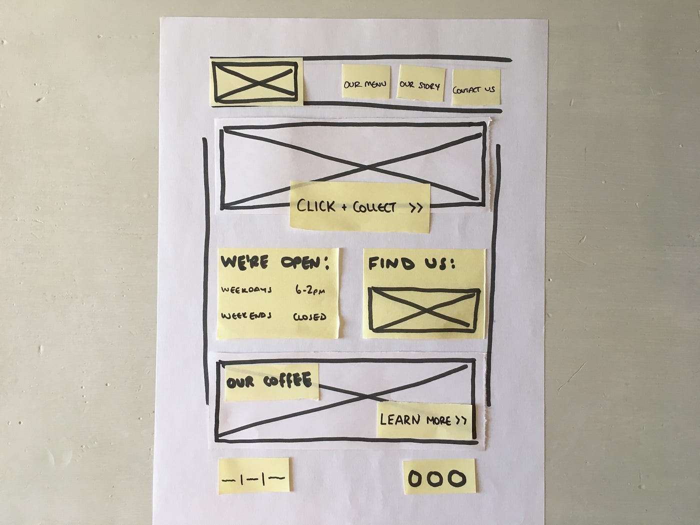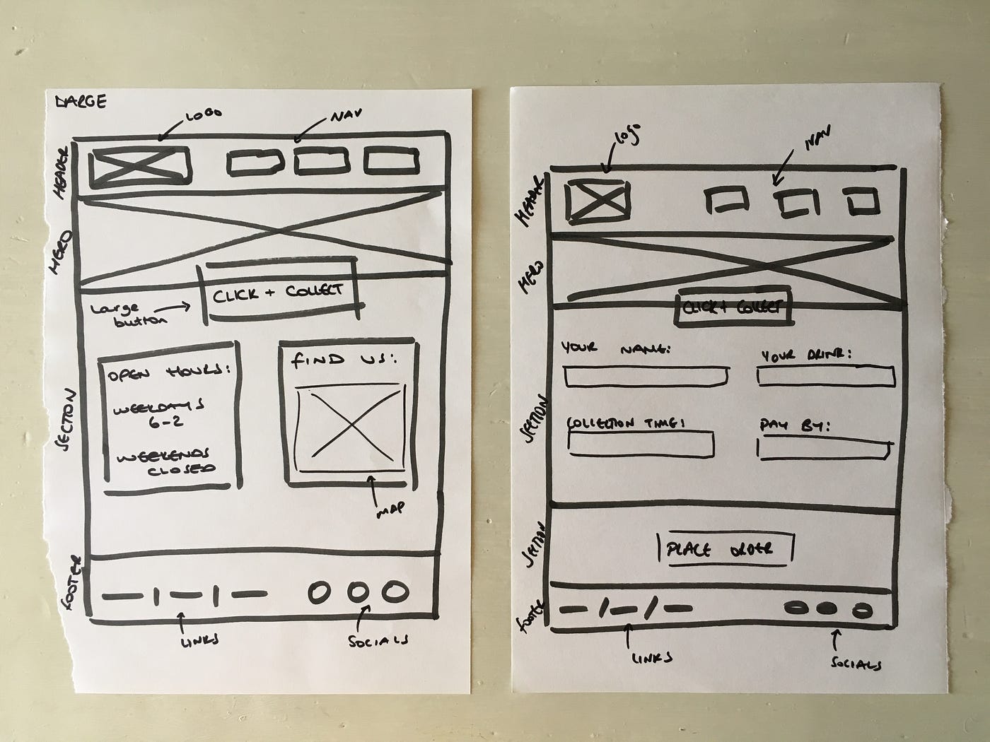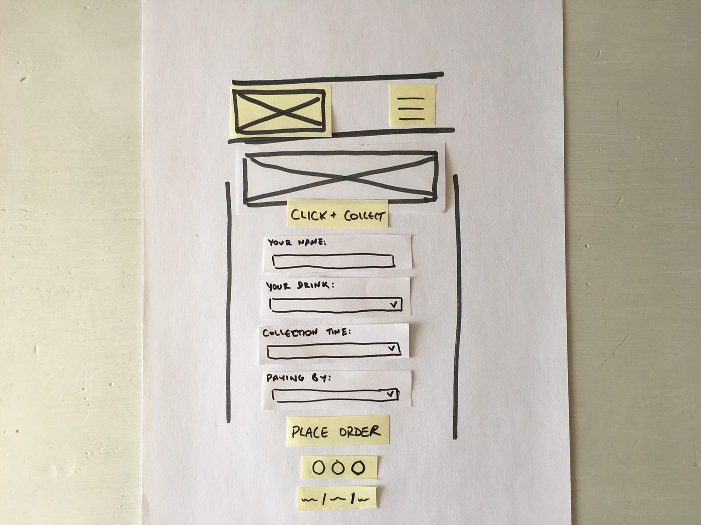 Next I moved onto wireframing the landing page and the click and collect page for large screens.